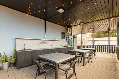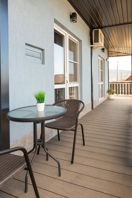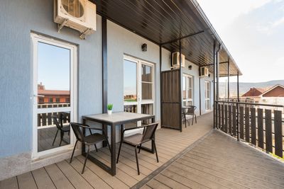 Все номера с удобствами и кондиционерами, на втором этаже прекрасная терраса: кухня и столики, прекрасный вид на горы, во дворе мангальная зона.